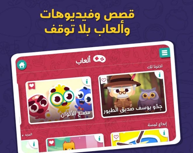 تطبيق لمسة للاطفال للاندرويد apk و للايفون ios مجانا، برنامج تعليمي مخصص للصغار من عمر 8 سنوات فما أقل، لهذا حرص المطور على تسهيل التصفح الداخلي وبالفعل نجح في ذلك، بحيث لن يكون الطفل بحاجة الى ولي الأمر لكي يتمكن من تشغيل قصص و العاب اطفال عربية وما شابه ذلك.
