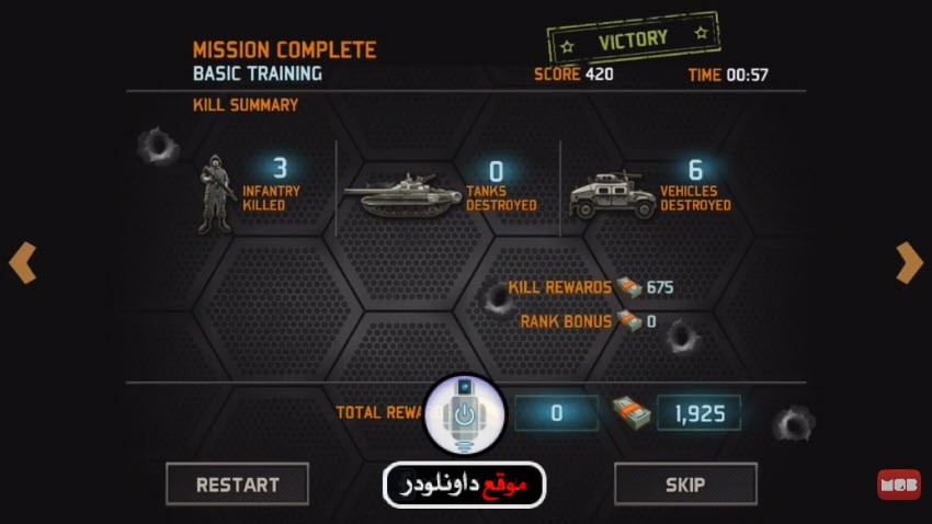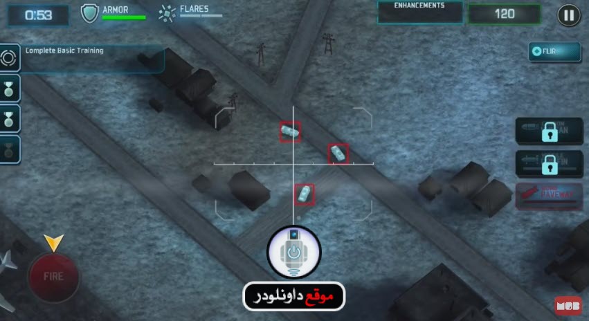 المعارك موضحة أمامك على الخريطة، مع كل مهمة جديدة تزداد درجة الصعوبة، ويزداد معها عدد الأعداء في ساحات القتال، الجدير بالذكر أنك تواجه عدد مختلف من الخصوم، من بينهم جنود أرضية تحمل أسلحة نارية، مدرعات ودبابات بتصاميم رائعة تتحرك أمامك وتحاول تهديد طائرتك الحربية، يظهر على الشاشة الكثير من العلامات والأيقونات، منهم الطاقة المتبقية لديك، عدد الطلقات التي بحوزتك من كل نوع، مع خيار عبارة عن زر للتقريب والتصويب، مما يزيد من فرصة وصول طلقاتك الى أعدائك بشكل عالي الدقة، مع كل فوز تحققه تحصل على مكافأت رائعة من العملات الذهبية وغيرها، استخدمهم في عمليات التطوير للأسلحة والطائرات، أو في شراء عناصر جديدة.